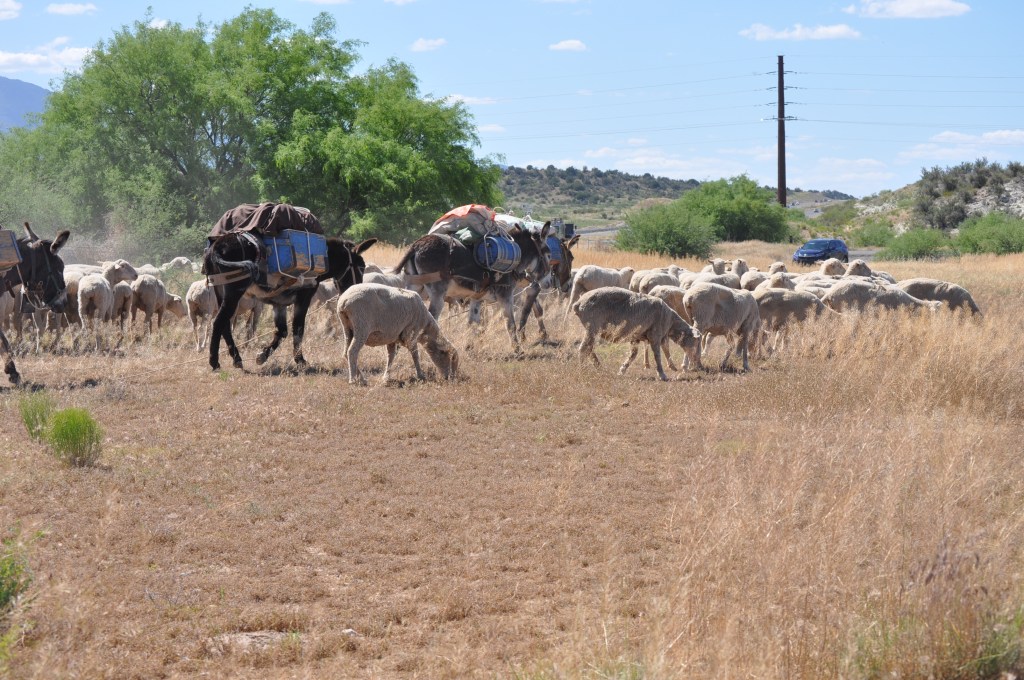 Out ahead, the donkeys were seen with the camp tender. One herder was slightly ahead but off to the right of the sheep keeping them moving forward with the aid of the dogs. The last herder was in the rear checking for any stragglers. He turned and waved and shouted he would see us tomorrow.